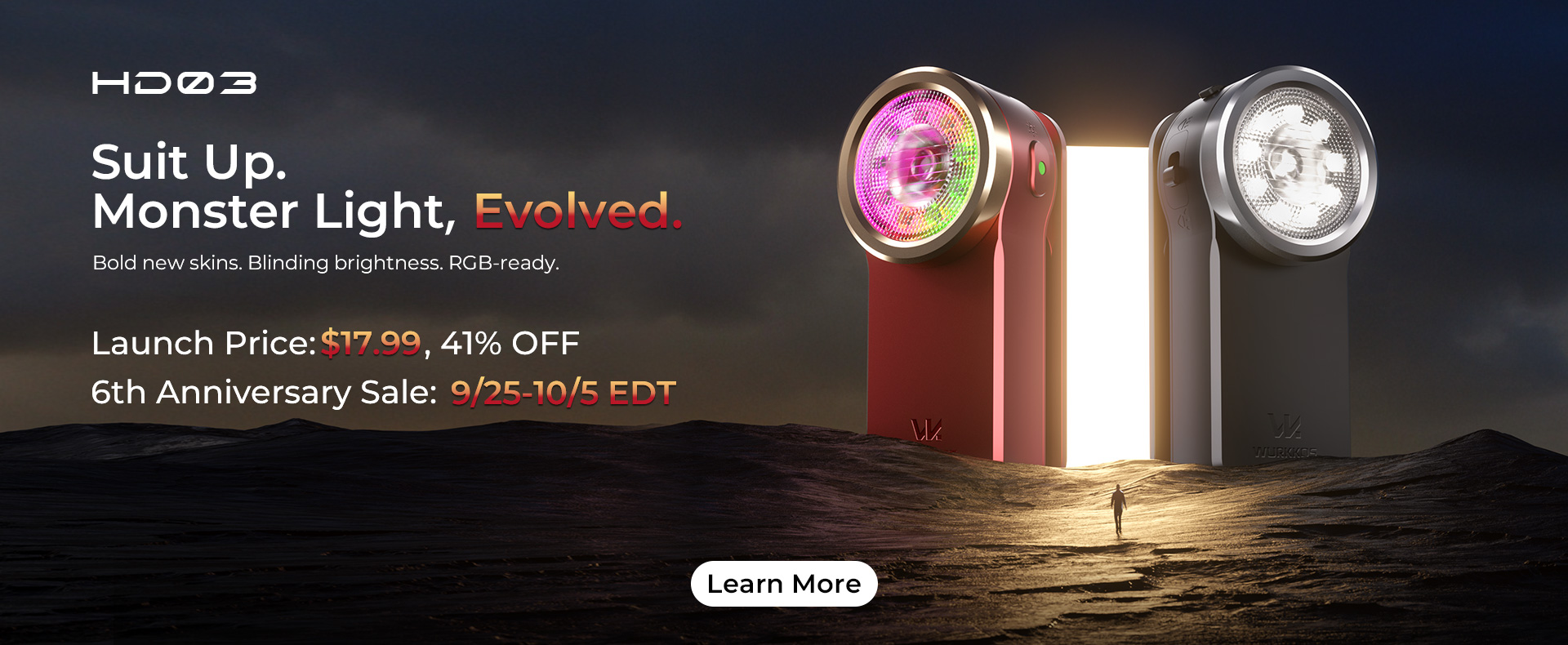 2. Fan-Favorite Flashlights in New ColorsClassic models get a bold new look—gear up with style.HD03 – Refreshed in Red & BlackMonster Reforged. Skinned in Armor.Since its July debut, the HD03 has won fans for its pocket-sized power and impressive 680-lumen output.
