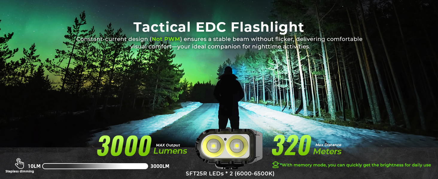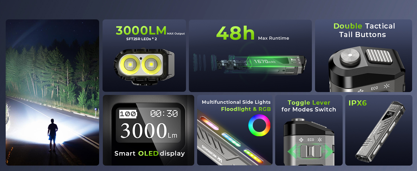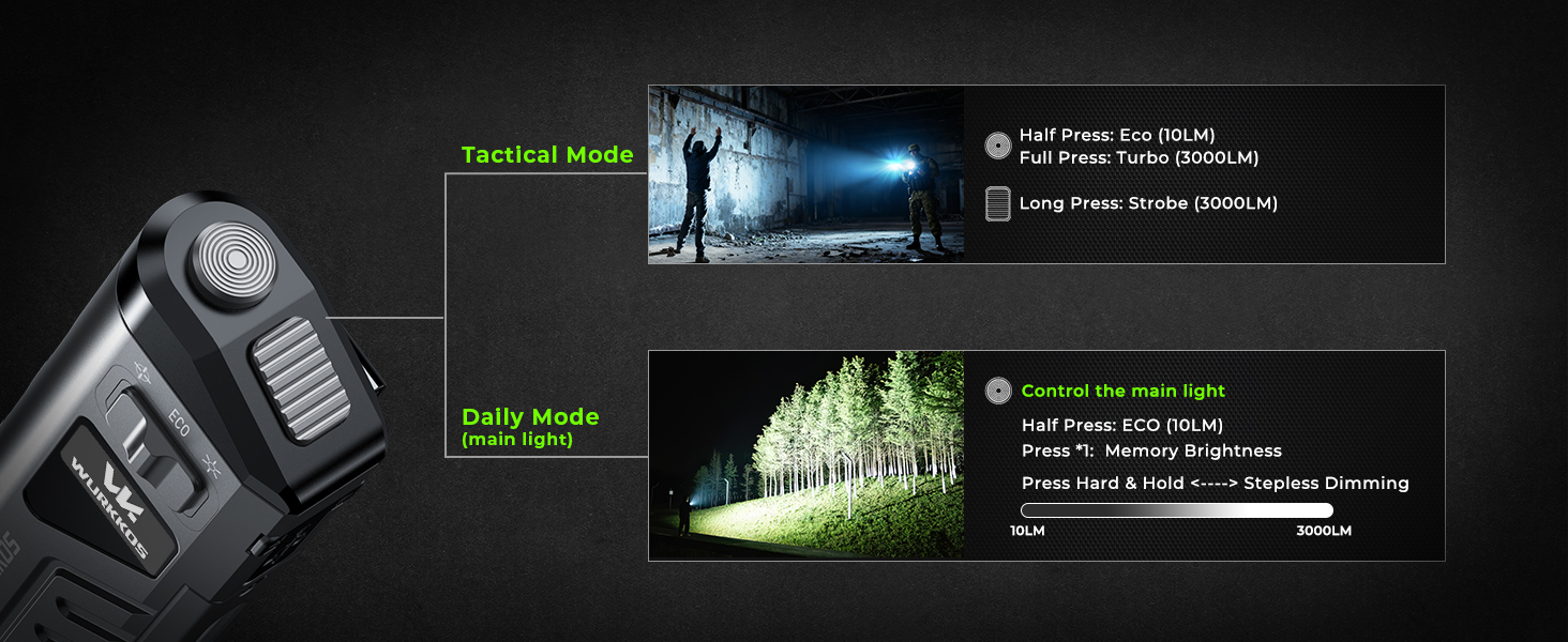 Home > Wurkkos > 【New Release】Wurkkos TD11 Smart OLED Tactical Flashlight, 3000LM 320M, Dual Tactical Tail, Boost Constant Current