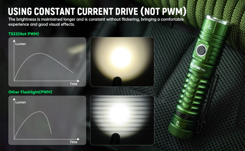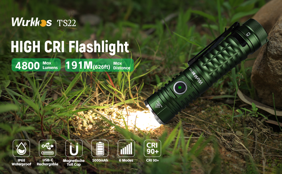 Multiple mode selection: Wurkkos TS22 flashlight featured with 6 adaptable light modes: Eco/Low/Medium/High/Brightest/ Strobe, lasting as long as 280 hours (Eco), making it an ideal companion for your outdoor adventures.