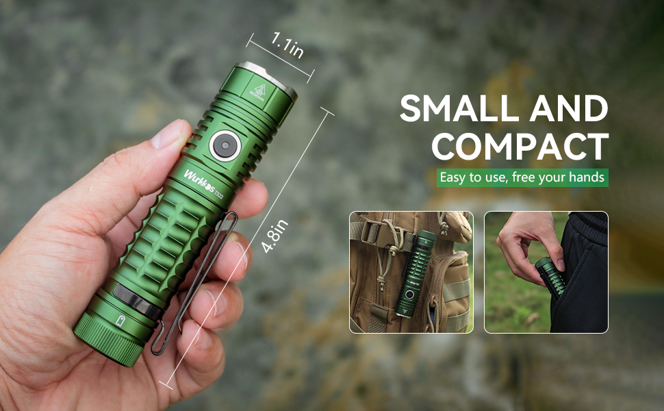 Sturdy and easy to carry: The body of Wurkkos TS22 is made of aviation-grade 6061 aluminum alloy, which is firm and rust-free. It meets IP68 and can work at a depth of 2 meters underwater and resist drops and impacts. It weighs only 95g (without battery), which is convenient to carry and use.