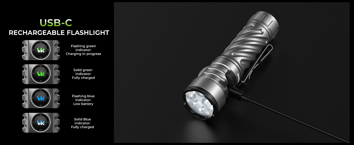 【Brazil Warehous】Wurkkos TD01C Rechargeable Tactical Flashlight, Throw 1000M IPX8 Waterproof, USB-C Torch PMMA Lens,