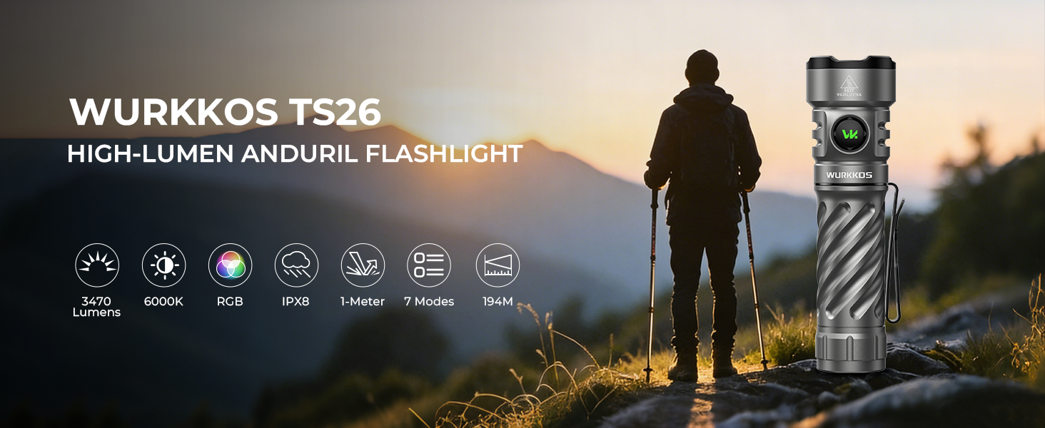 【New Release】Wurkkos TS26 Anduril EDC Flashlight, 3470 Lumens 197M, Boost driver, Reverse Charging&IPX8, Magnetic tailcap