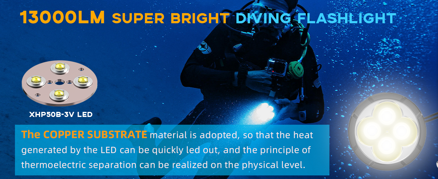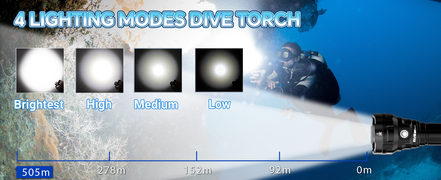 Wurkkos DL70 is a professional, super-bright diving flashlight, powered by two 26650 li-ion rechargeable batteries and comes with a simplified user interface for safe and convenient operation, 4 XHP50.2 (3V) LEDs. DL70 Introduction