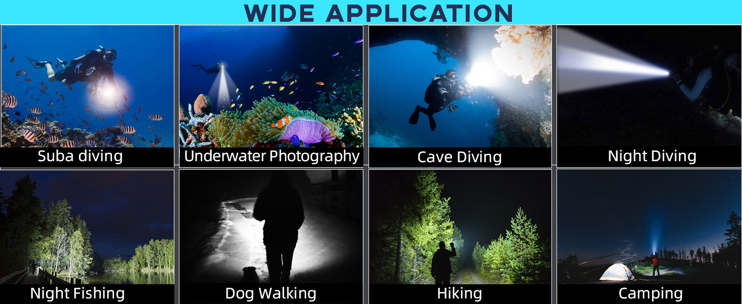 1. 100m Waterproof Depth, Built for Extreme Underwater Environments The DL70 is designed for harsh underwater conditions with an IPX-8 waterproof rating, capable of withstanding depths up to 100 meters. Its rugged construction and magnetic side switch ensure reliable operation even with wet hands or while wearing diving gloves, making it an ideal companion for deep-sea exploration, diving, and underwater rescue missions.